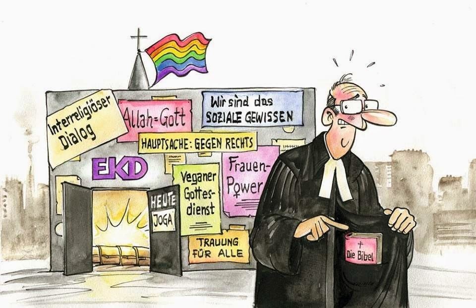 ¹ man verwechsele diese keinesfalls mit der protestantisierten deutschen Amtskirche und erst recht nicht mit den «Wirrkirchen» der kommunistischen Befreiungstheologie also den «sozialistischen Laienkirchen» des Protestantismus! Die Anhänger der vereinigten falschen Kirche → Afterkirche oder Widerkirche → (vgl. Anna Katharina Emmerick) dem «Standbild des Tieres», werden das Kennzeichen 666 annehmen, für rechtgläubige Katholiken eröffnet sich sogar die Forschungsfrage ob sie es durch die furchtbaren mRNA Covid - Injektionen nicht bereits angenommen haben? vgl. →