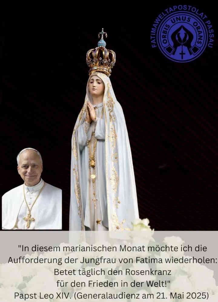 Beten wir für Papst Leo XIV. Möge der Heilige Vater von Stund an ausschließlich auf den Heiligen Geist hören und die Kirche von den Feinden Gottes säubern, bitten wir unsere heiligste Mutter flehentlich um Beistand!