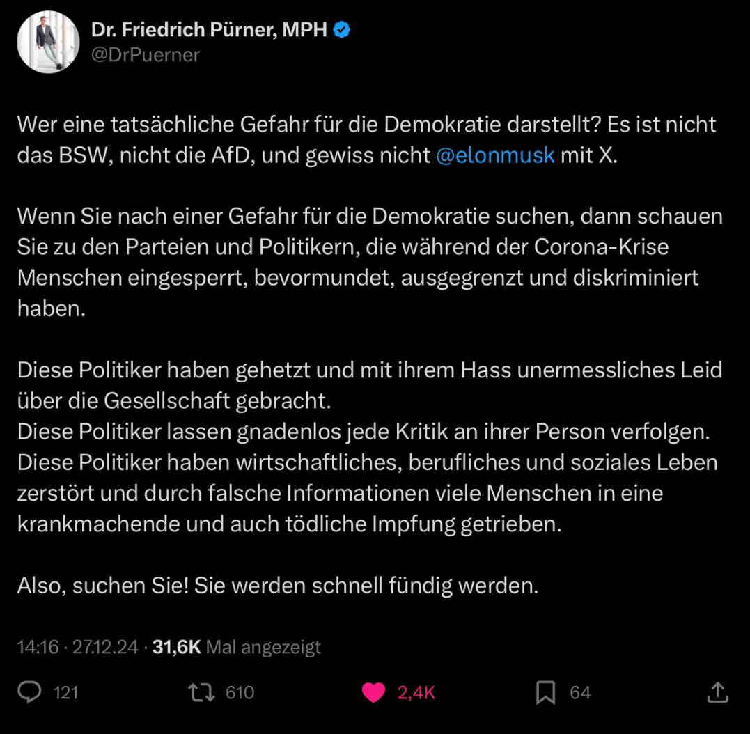 Eine Präsentation von Prof. Homburg im Bundestag enthüllt anhand von durchgesickerten Geheimdokumenten, dass das deutsche Gesundheitsamt RKI während der Corona-Krise die Öffentlichkeit in die Irre geführt und keine wissenschaftliche Beratung geleistet hat, sondern vielmehr unzulässige Anordnungen von Politikern ausgeführt hat. Das Material, etwa 10 GB, wurde kürzlich von einem anonymen RKI-Mitarbeiter geleakt. Die Echtheit wurde vom Bundesgesundheitsministerium bestätigt. Hier wird nun final und unwiderlegbar, hieb- und stichfest bestätigt was ich hier seit Jahren schreibe. Die Covid - Tyrannei wird als eines der größten Verbrechen gegen die Menschheit in die Analen der Geschichte eingehen.